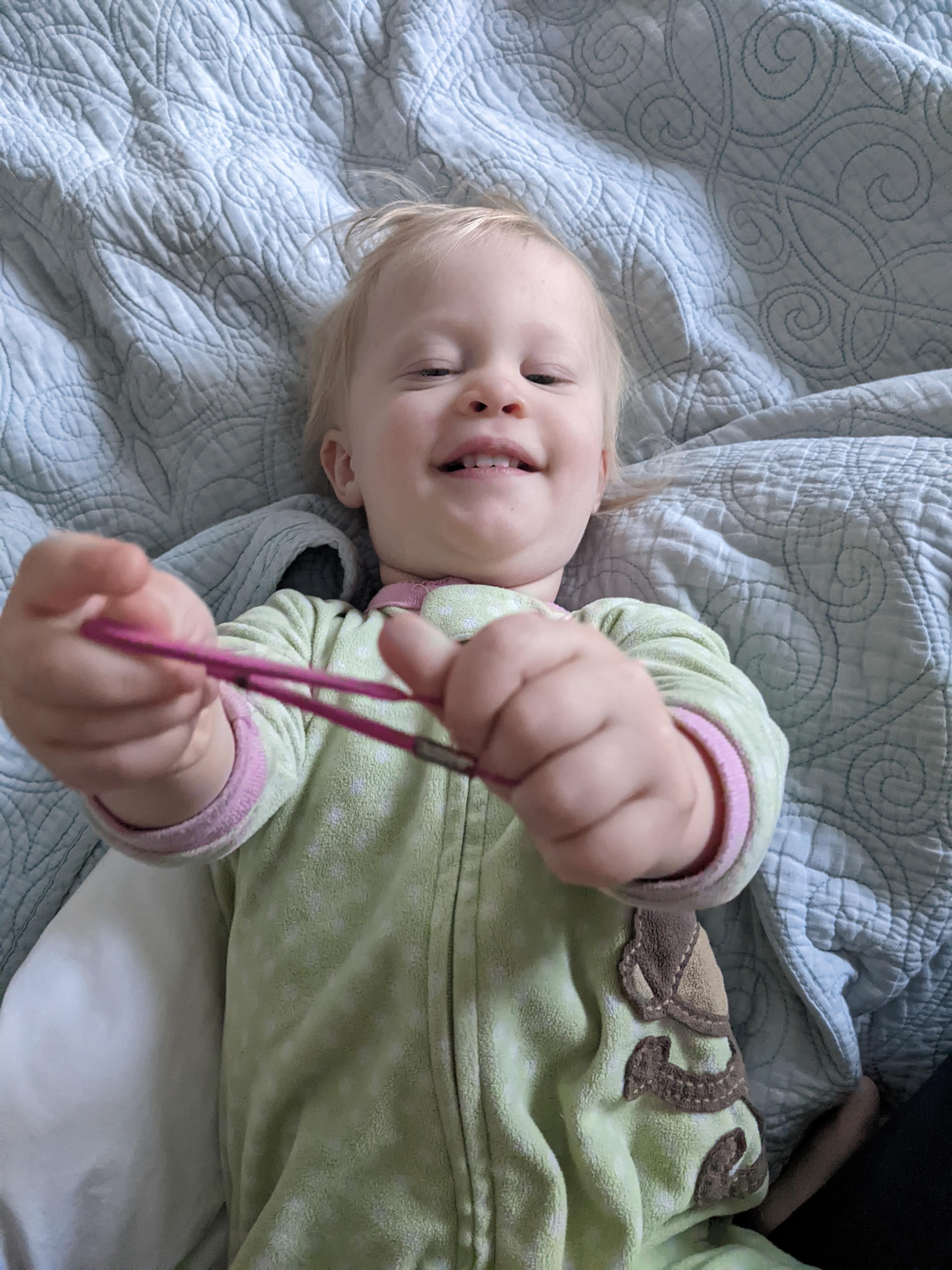 Maebryn after going swimming, getting all snuggled up in a towel.